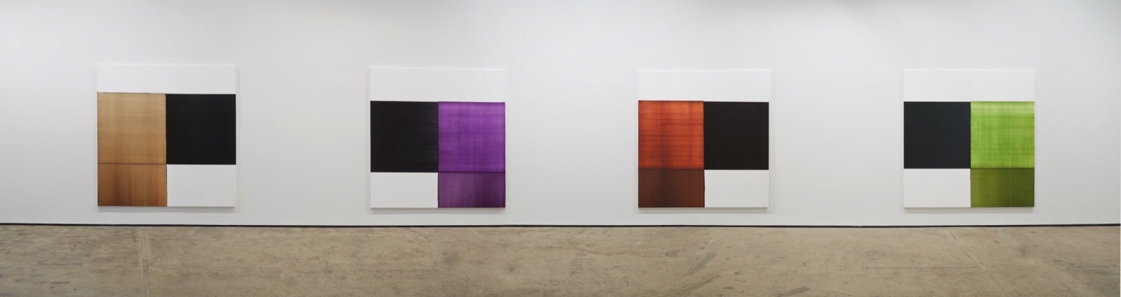 Innes has achieved an intense luminosity with the paintings that comprise Liminal, so much so that the works almost appear to be lit from within. The new Exposed Paintings include some of Innes’s largest to date, measuring over seven and a half feet in height. The creation of the works is physically arduous as they have to be completed in a single day. The Untitled Lamp Black Paintings include the eponymously named color, a matte black of particular richness and depth. The muted surface of this matte black on one half of the paintings stands in stark contrast to the ethereal glow of the chromatic intensity on the other half. The resultant works of both series are spare, elegant canvases that combine a formal precision with an intense poetic beauty and conceptual complexity.